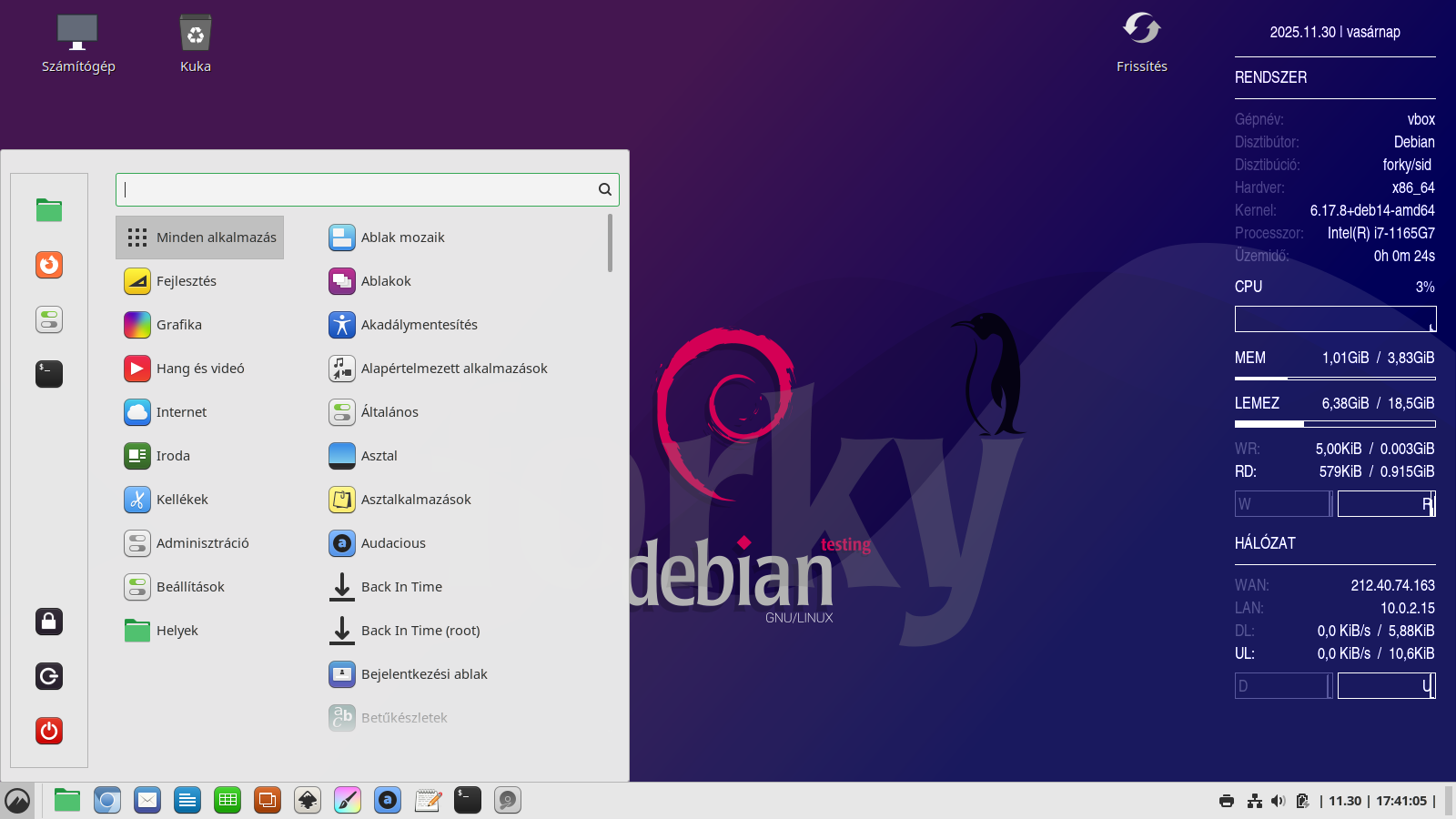 Debian 14? - forky / Cinnamon DE, saját háttér és Conky (a jövő)
